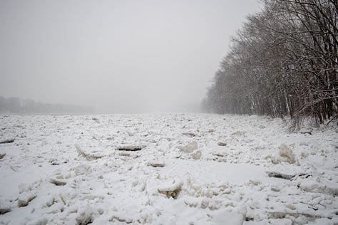 Perilous, icy creeks and rivers play a big part in Winter’s Teeth. During drafting, I couldn’t help but envision the river that one winter when the ice piled up and got stuck along the bank by my house. (I maybe walked on it, and neighbors maybe tattled to my mom.)